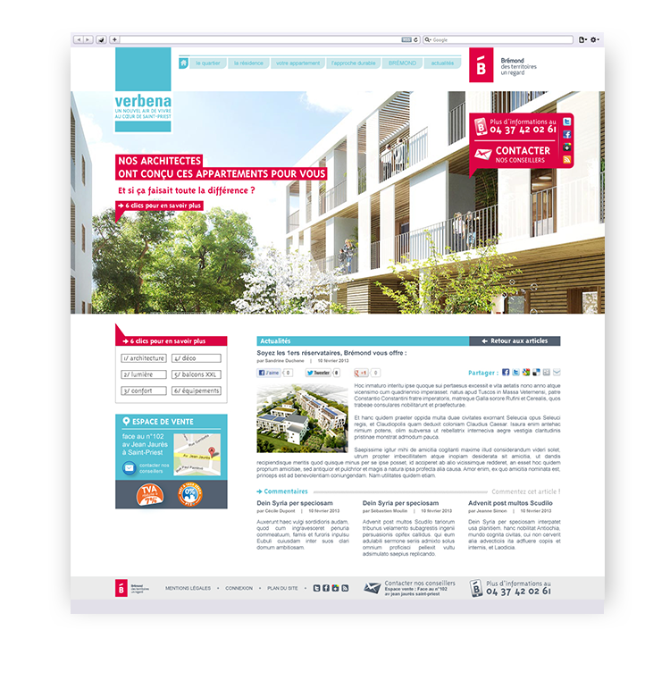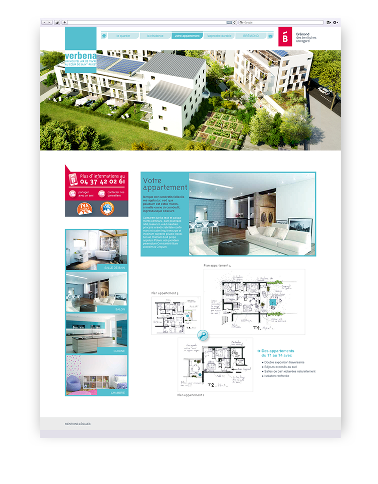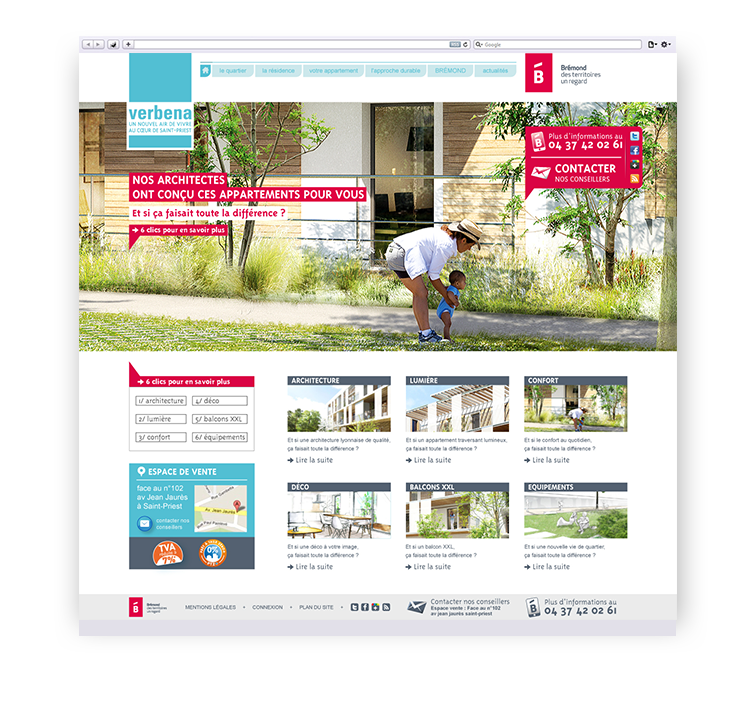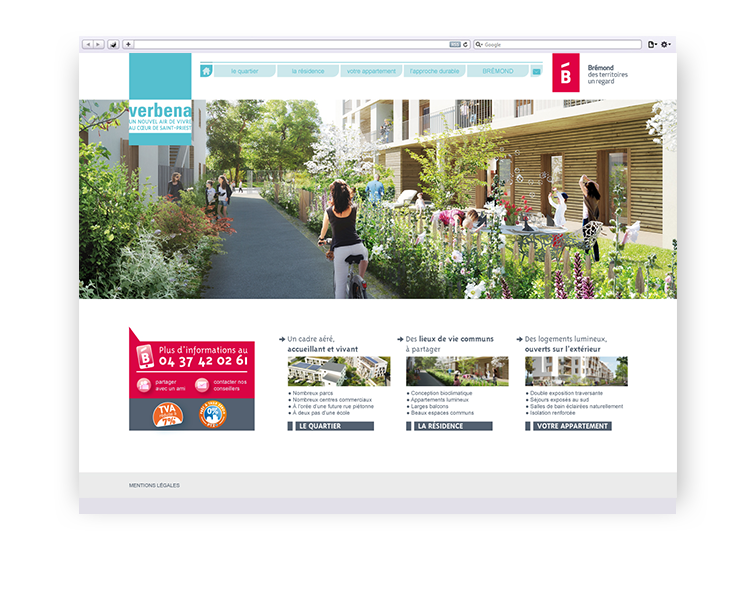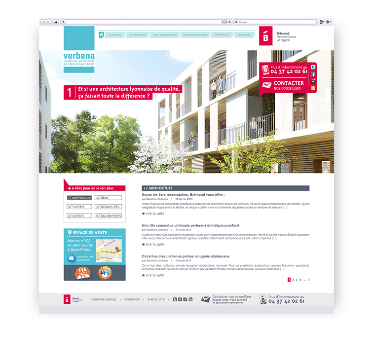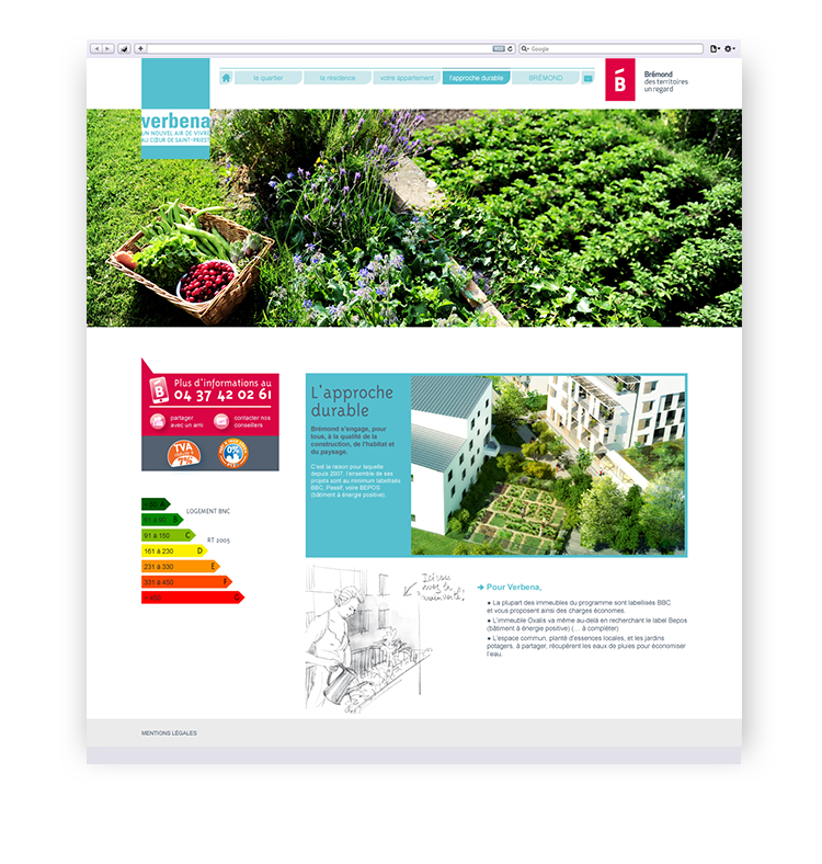 Conception de l'architecture, de l'ergonomie et du graphisme du site internet de la résidence Verbena.